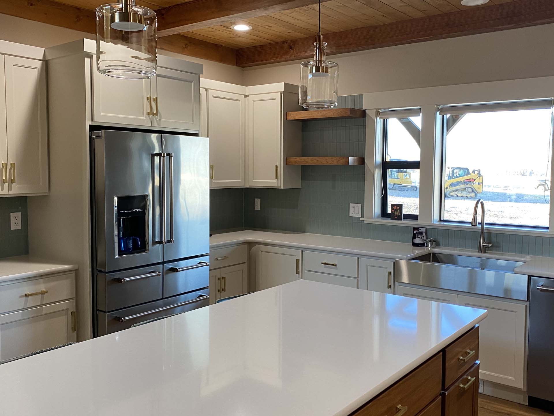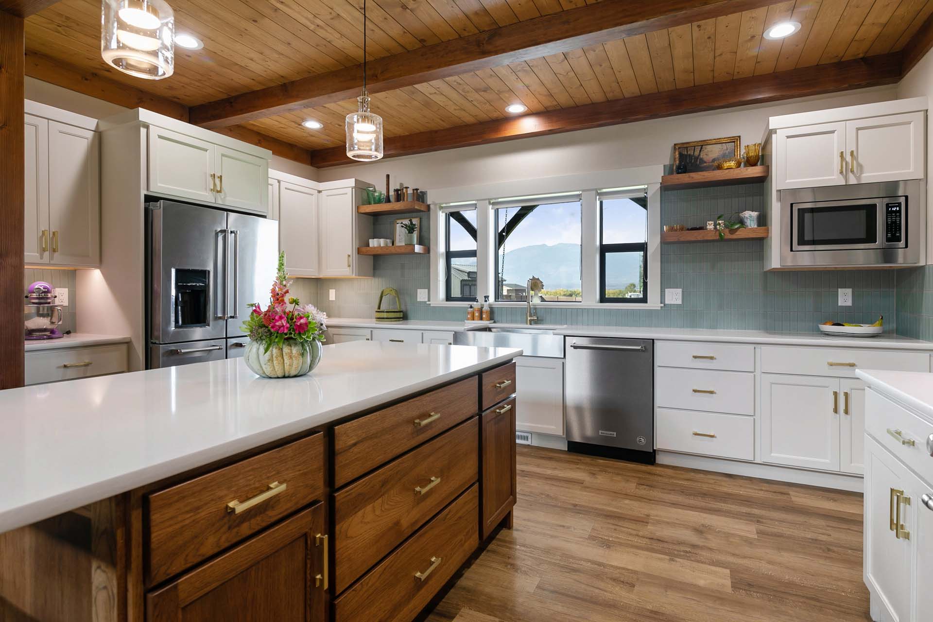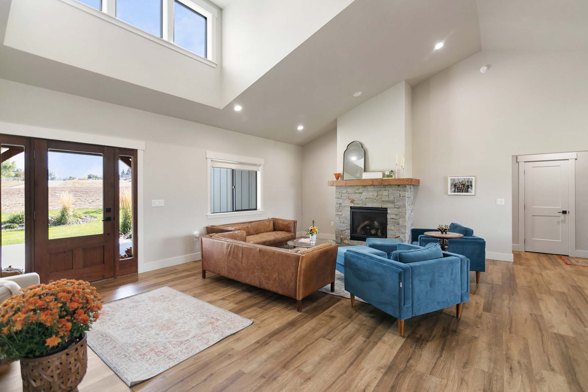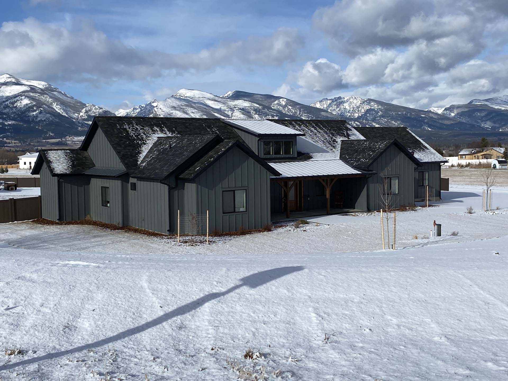 This modern farmhouse rancher has 4 bedrooms, 3 baths, an office and an expansive open-concept living space. The living area has large windows to accentuate the light and views of the Bitterroot and Sapphire Mountains. Vaulted ceilings, a fireplace, dining room and a large kitchen with pine ceiling, granite countertops, and a sleek tile backsplash make this home ideal for entertaining friends and family. Front and back porches are graced with timber frame post and beams. The mud room/laundry area leads to a large garage with a bonus room.